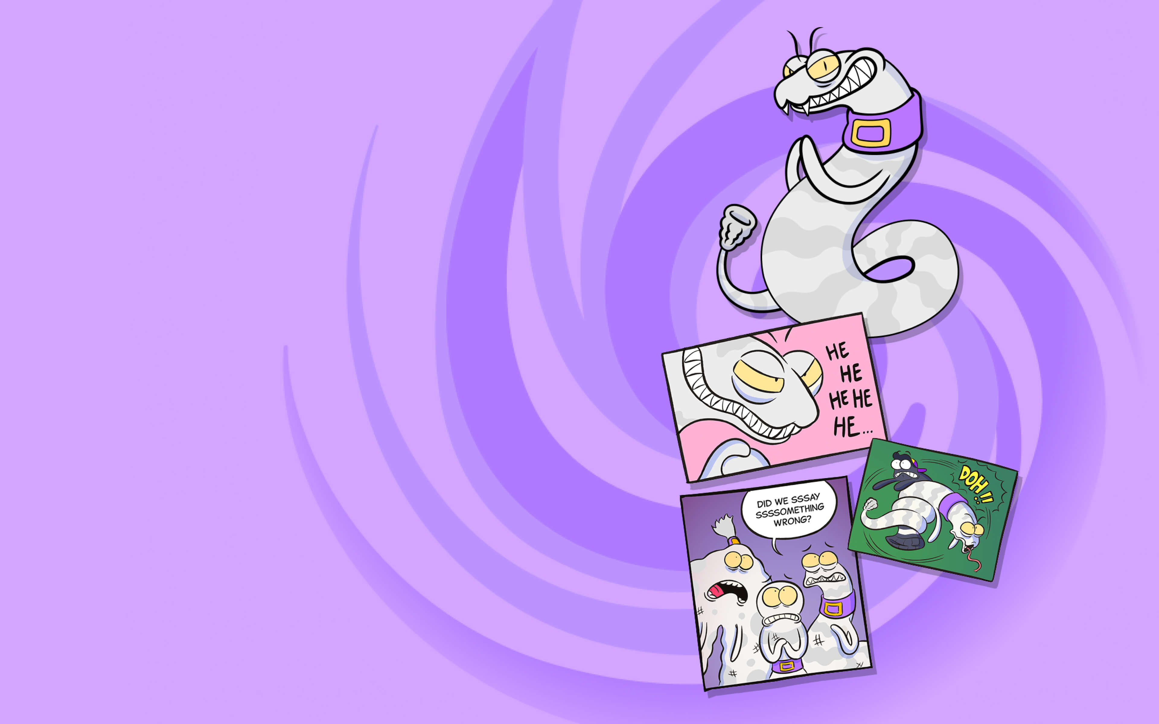 Still, he slithers on with his dye-washed companions Montague and Cordelia, trying to bring order to an unruly land.