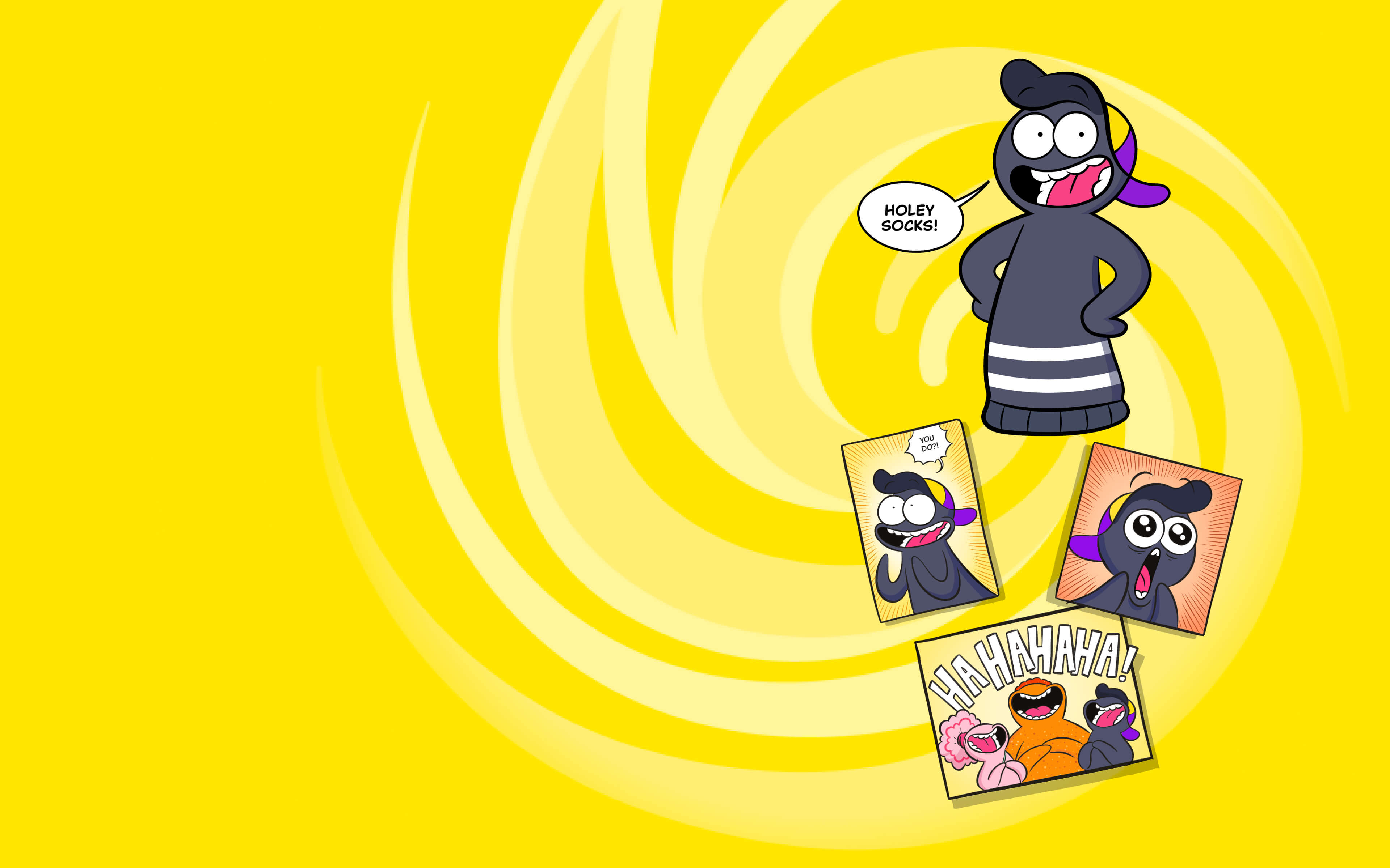 If he’s not hanging out at The Hole in the Heel, you’ll probably find him with his best friends, Ruffles and Hanks, tumbling on an awesome adventure in the Sock-Verse!