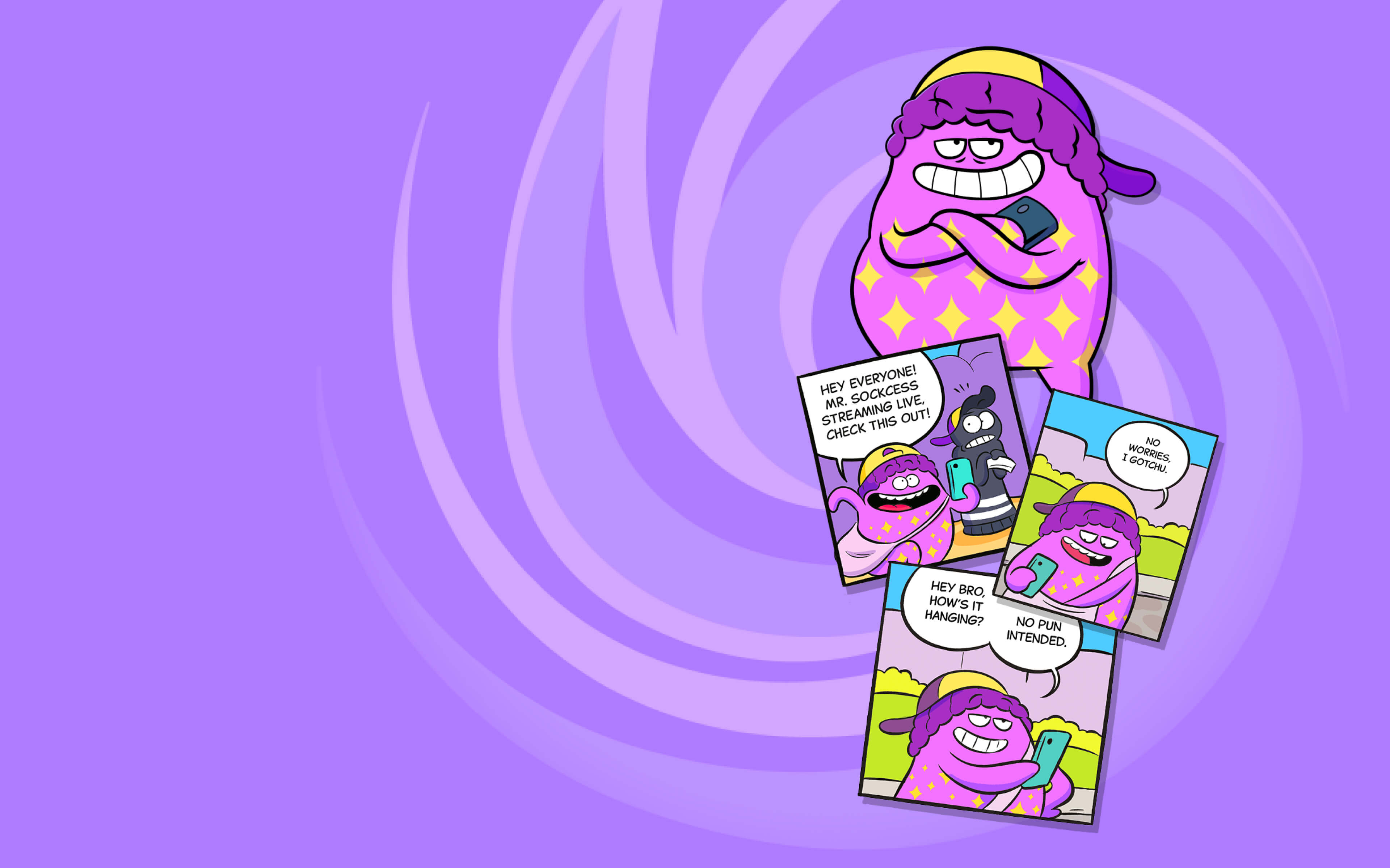 Obsessed with followers and the perfect lighting, Mr. Sockcess is chronically online—always filming, posting, and chasing his big break.