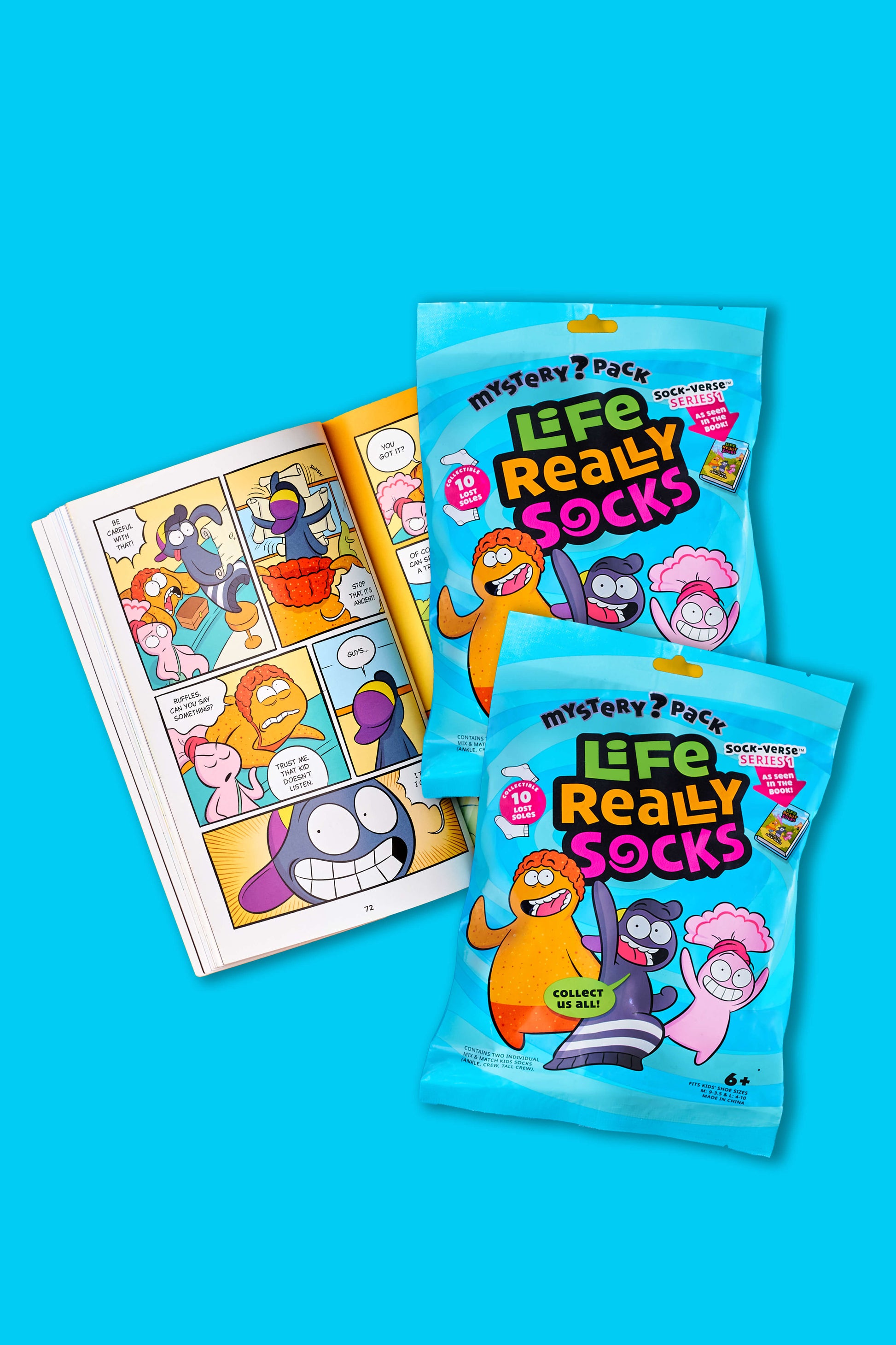Every mystery pack comes with two totally random sock characters, so you never know what youāre going to get. Will it be Freddy, Capulet, Cotton Candy, Ruffles, orā¦? The combinations are endless! And while some characters are rarer than others, they are all designed to be mixed and matched.Ā