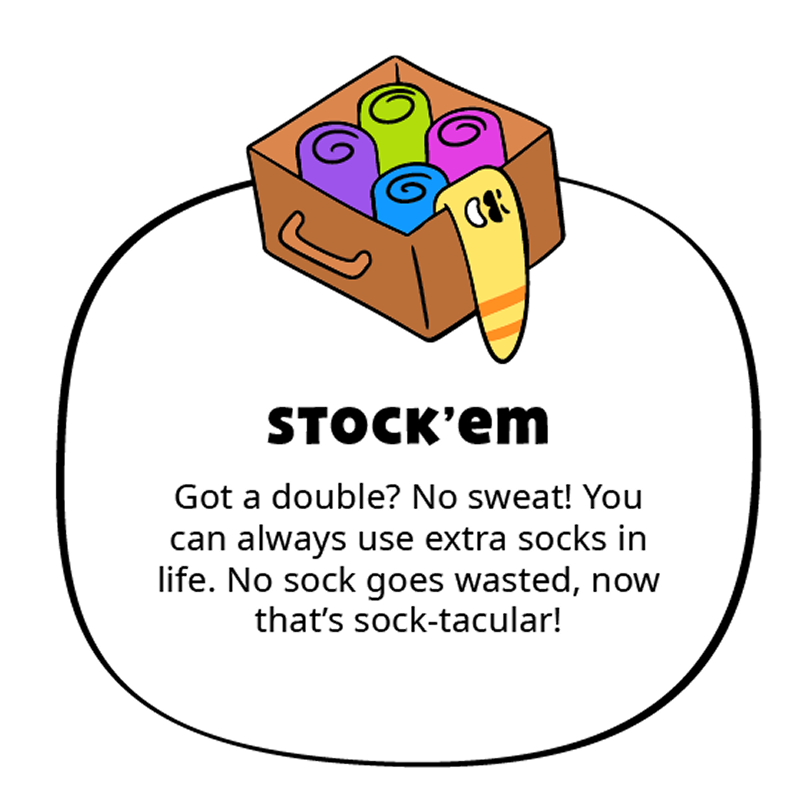 But what happens if you get a double? Well, the cool thing is⦠itās a sock, so you can always use it! Oh, and all socks come individually wrapped, so you can trade them with friends knowing they didnāt wear them on their stinky feet (eeeewwww).